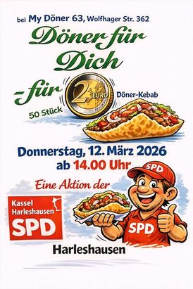 Wir laden Sie auch am 13. März 2023 ein zu einem Döner-Kebab für 2,- €. (50 Stück, solange der Vorrat reicht)